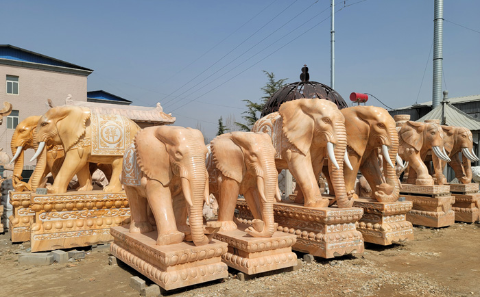 大象是一種高大威猛的動(dòng)物,但是它的性情比較溫和,所以也深受人們的喜愛,石雕大象也代表著強(qiáng)大、和平、吉祥、幸福美滿的寓意,石雕大象具有聚財(cái)、招財(cái)、守財(cái)?shù)淖饔?,所以很多商鋪、酒店門口都會(huì)擺放一對(duì)石雕大象,除此之外,石雕大象還有裝飾作用,擺在門口顯得很有氣勢(shì)。